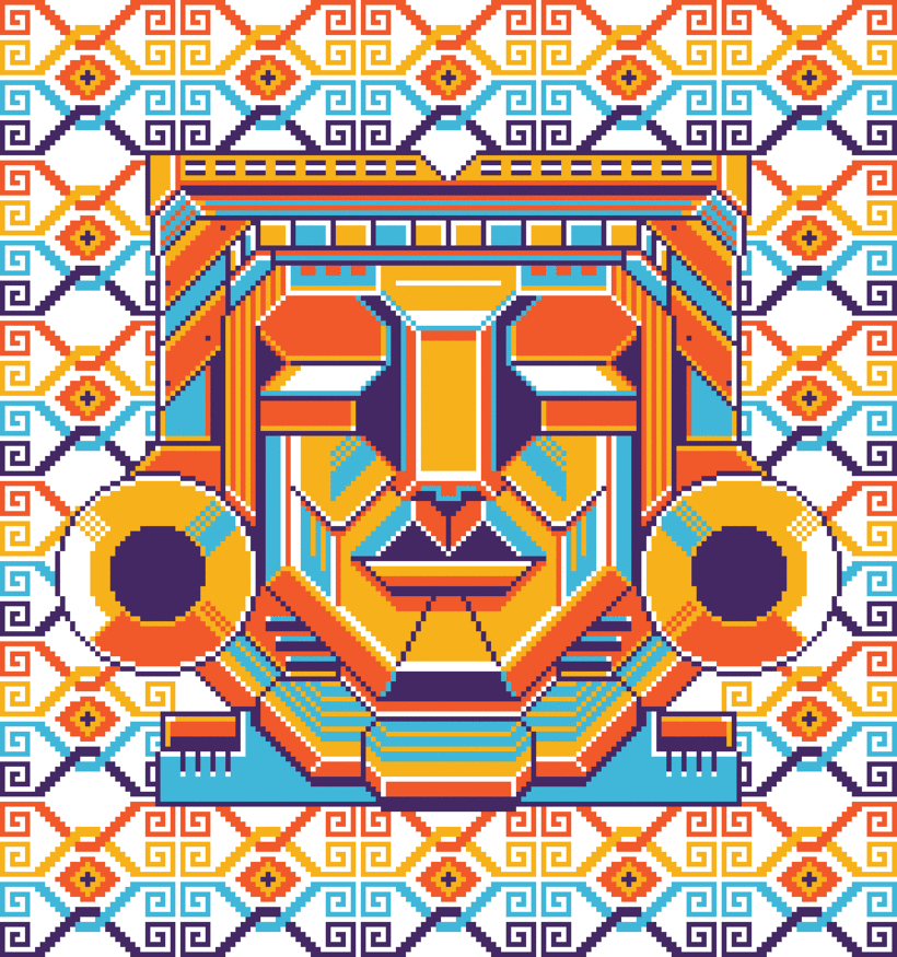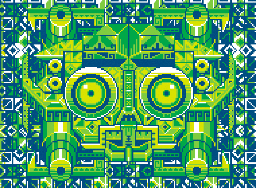 En el trabajo de Shaku se pueden apreciar símbolos mexicanos y de la cultura pop con un estilo a la estética de los video juegos vintage de los años noventa y ochenta. En Orbital Marketing Digital pensamos que Galamot es uno de los mejores representantes del pixel art que tenemos en México.